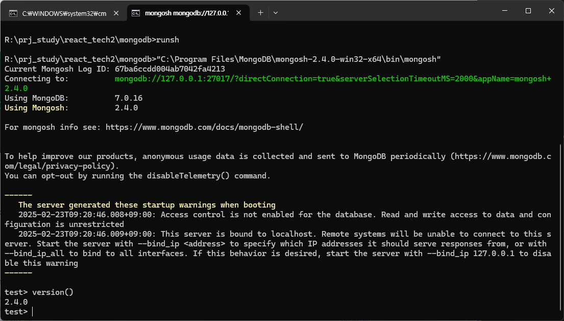 | [mongoDB v7] 2. Robo 3T client 설치, 실행 (0) | 2025.02.23 |