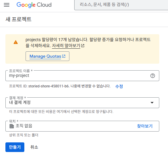 구글 클라우드 콘솔 접속